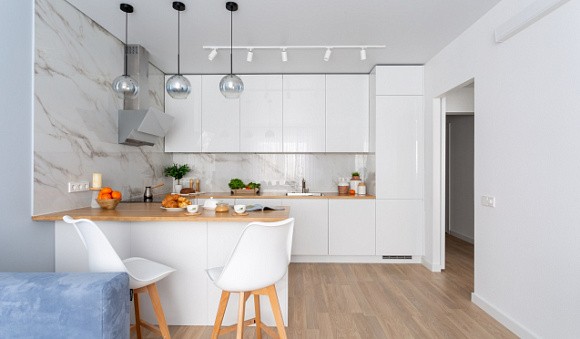 Как правило, белые и бежевые модели отличаются более низкой стоимостью, чем цветные. Учитывайте это при покупке комплекта, особенно сложной версии. Например, кухни с барной стойкой, которая сама по себе потребует значительных вложений.