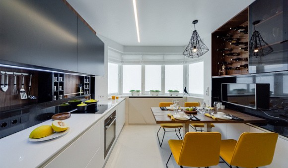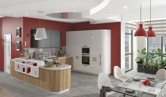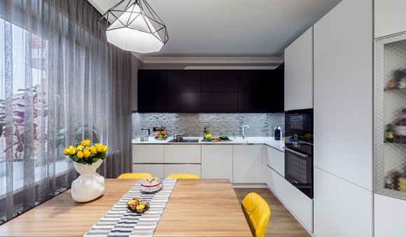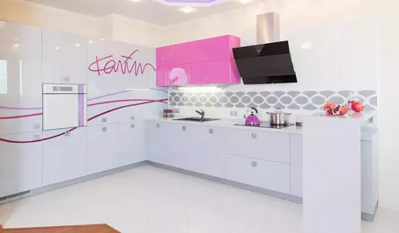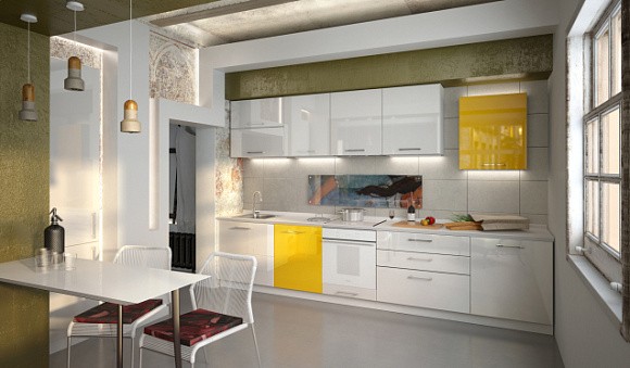 Если кухонный гарнитур белого цвета, то его можно удачно сочетать с разными оттенками. Если вы хотите добавить динамичности и современности, то можно использовать яркое оттенки, даже кислотные. Белый цвет будет их оттенять, благодаря этому вы сможете добиться идеального результата.