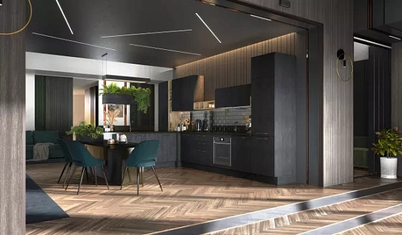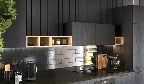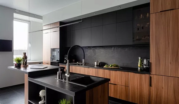 Черная кухня – один из актуальных трендов, который можно использовать в качестве основы дизайнерского решения. Такой вариант выглядит неординарно и шикарно на большой площади, например, в квартирах с планировкой студии. Для небольшого помещения подойдет комбинированный вариант кухонного гарнитура, дополненный: