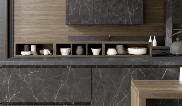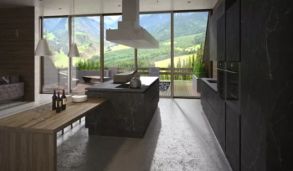 В современном дизайне черную кухню можно использовать с монохромной отделкой в белом, сером или бежевом цвете. Гранит, мрамор, хромированная сталь – роскошное и дорогостоящее решение.