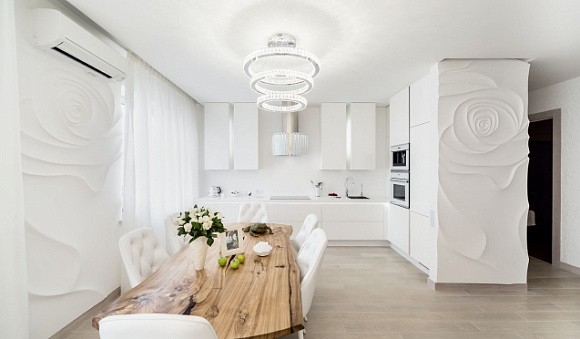 Визуальное расширение пространства. Глянцевые поверхности отражают солнечные лучи, тем самым делая комнату более светлой и просторной.