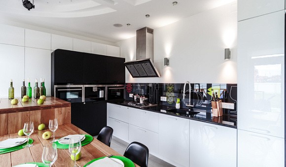 Черный цвет лучше использовать в просторных помещениях с хорошим дневным освещением. При этом его желательно комбинировать с другими оттенками, чтобы создать красивые акценты. Плюс черного в том, что он прекрасно сочетается со многими текстурами, например, дерево и мрамор, камень, стекло. Используя эту особенность можно создать по-настоящему интересный современный интерьер.