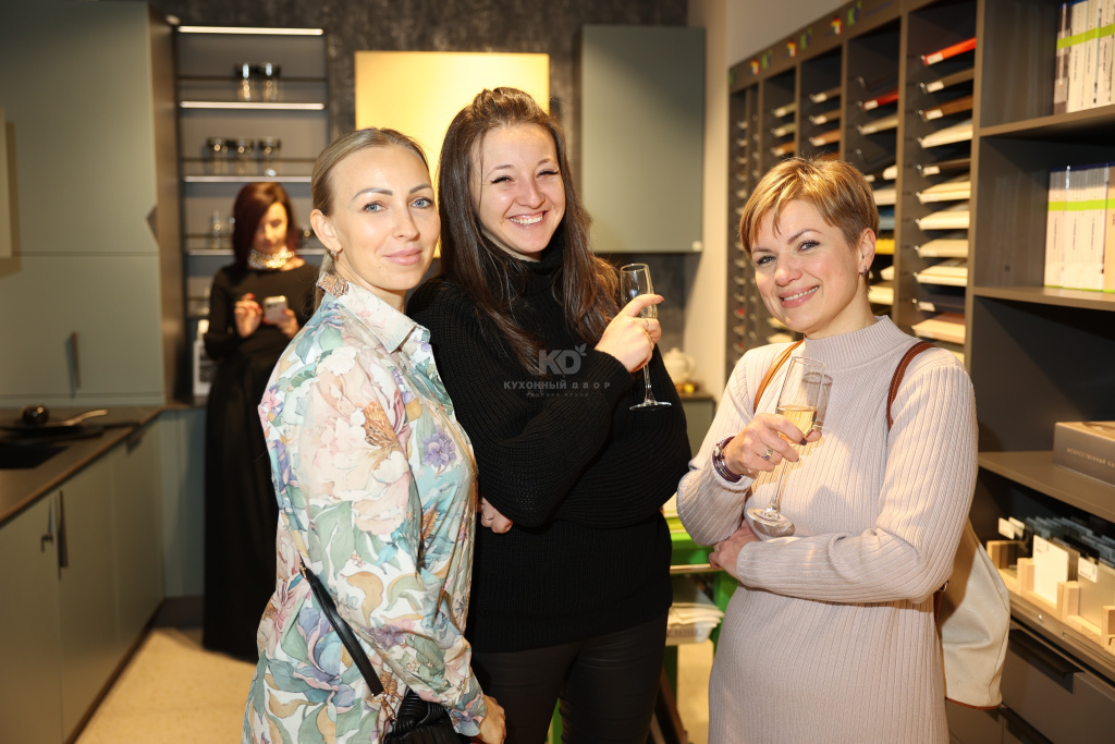Торжественную часть открыл правообладатель бренда «Кухонный Двор» и идейный вдохновитель — Юрий Викторович Титов. Следом выступили: исполнительный директор и руководитель департамента продаж Артёмов Александр Владимирович, руководитель дизайн-студии Прошина Анна Николаевна и управляющая салоном КД «Можайский» Лепехо Елена Анатольевна.