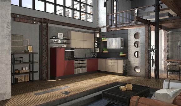 Угловая мойка – не самое эргономичное решение, но она прекрасно впишется в компактную кухню лофт. Часто она выглядит как треугольник или скошенная трапеция.