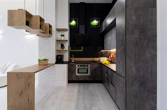 • Лаконичность: Чистые линии позволяют кухне гармонично вписаться как в лофт, так и в неоклассику.