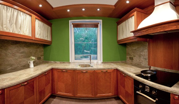 Для комнаты на северной стороне используйте более яркие акценты и вставки. Так, поверхности кухни коричневых цветов можно разбавить желтыми, алыми или оранжевыми оттенками. Такая комбинация внесет в пространство немного тепла и будет смотреться позитивно и интересно.