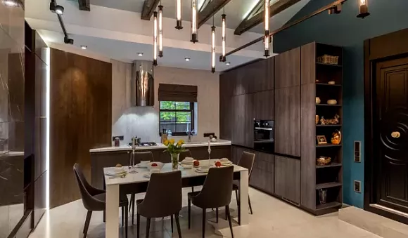 • использование высоких потолков с качественными перекрытиями. При использовании кухни с полуостровом рекомендуется делать выбор в пользу небольших светильников, которые отлично гармонируют с имеющимся интерьером.