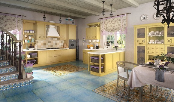 Расширить маленькую кухню можно посредством объединения с гостиной. В этом случае это может быть желтая кухня или синяя кухня.