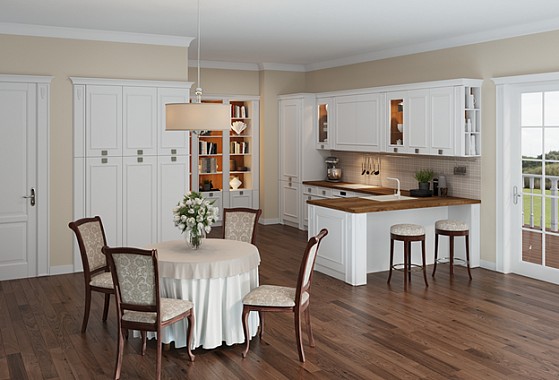 Кухня Астрид выполнена в классическом стиле. Ему присущи строгие геометрические формы, симметричность линий, ненавязчивость декоративных элементов, сдержанность в деталях. Не зря классический стиль называют стилем аристократов. На кухнях классического дизайна всегда просторно, светло и уютно. Строгость форм классики здесь слегка разбавлена простотой и лаконичностью стиля модерн.