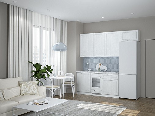 Кухня Лея — компактное готовое решение в классическом стиле, сочетающее элегантный дизайн и абсолютную функциональность. Изящные фасады с рамочной фрезеровкой придают ей нотку утончённости, а до мелочей продуманная конструкция делает её идеальной для небольшого помещения, в котором каждый сантиметр должен быть полезным.