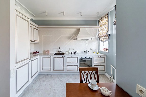 В окружении белоснежных фасадов помещение будет казаться не только больше, но и светлее. Если окна квартиры выходят на затененную сторону, идеальным выбором станет гарнитур с покрытием из ультраглянцевой белой эмали, который будет обладать зеркальным эффектом.