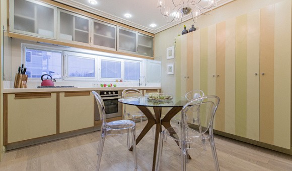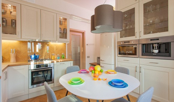 Светлая кухня смотрится современно, изысканно и утонченно. Подобную модель нельзя назвать скучной, ведь ее можно встроить практически в любое помещение, интересно обыграв и расставив акценты.