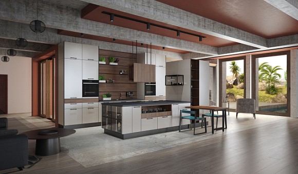 Выбирая гарнитур в светлых тонах, учитывайте его дизайн. От этого будет зависеть, насколько гармонично он впишется в пространство.