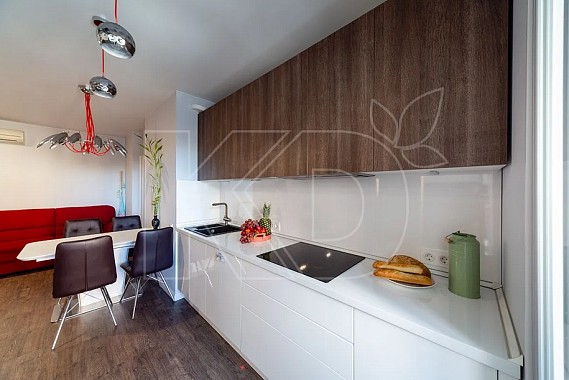 - Кухню с полуостровом. Подобная планировка оптимальна для просторных помещений, где полуостров заменит обеденный стол или барную стойку.