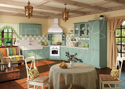 Стили Кантри и Прованс активно используют приглушенную зеленую палитру для отделки стен и мебели. Гарнитур травяного цвета удачно дополнят обои светлого нейтрального оттенка и простая деревянная мебель. «Кухонный Двор» поможет воплотить в жизнь все ваши мечты и фантазии, в нашем каталоге вы найдете удобный элегантный кухонный гарнитур для любого интерьера.