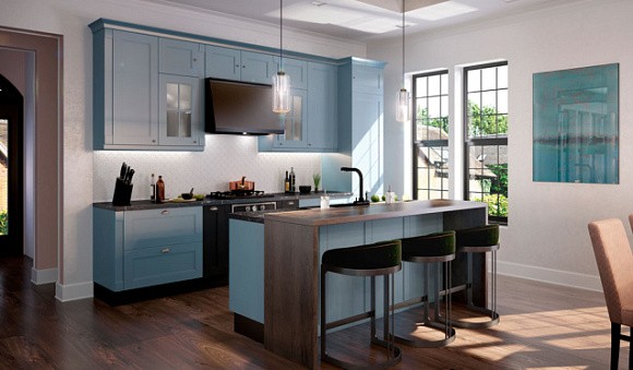 Такие кухни, как правило, выполнены в натуральном цвете: от золотистого до темно-коричневого. Как и белые кухни, они требуют тщательного ухода, который исключает чистящие и мыльные средства.