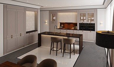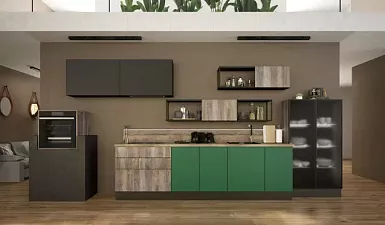 На первом этапе необходимо выбрать цвет стен, потолка и пола. Понять, какими будут фасады гарнитура – глянцевыми или матовыми, плоскими или филенчатыми.